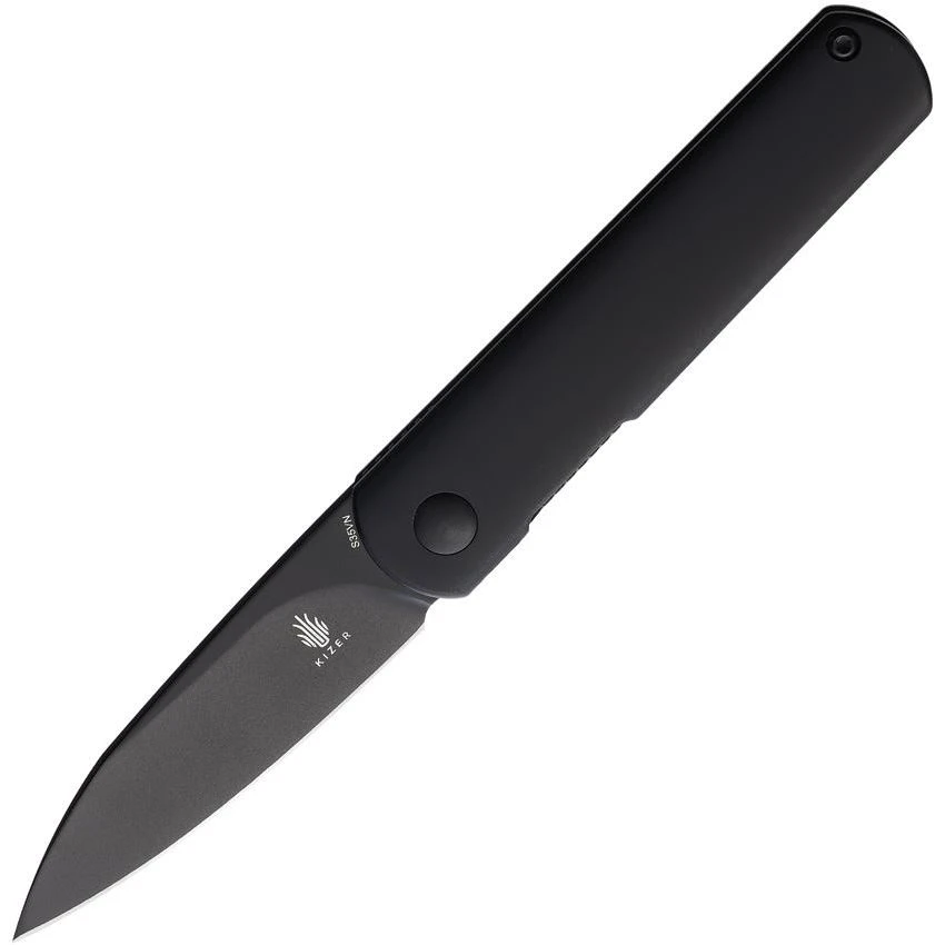 Model/Part Number – KI3499A5. Kizer Cutlery & Knives Feist Framelock Titanium. 3.75″ (9.53cm) closed. 2.75″ (6.99cm) black finish S35VN stainless blade. Black titanium handle. Pocket clip. Black nylon pouch. Boxed. Made in China.