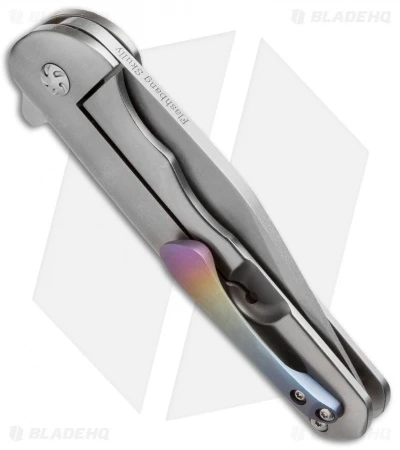 Kizer Cutlery, in collaboration with knife maker Matt Cucchiara, present the Flashbang. This production version of Matt’s custom Flashbang flipper has exceptional fit and finish. Its contoured titanium handle is satin finished and features Matt’s large skull profile, anodized. The matching pocket clip is machined titanium to complement the sleek style of the knife and the tumbled S35VN stainless steel blade flies open on a ball-bearing pivot at the push of the flipper. Overall, this is truly a superb folder.