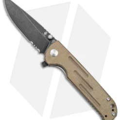 Kizer Justice folding knife is designed by Nhut Huynh and Azo, featuring green micarta handle scales with milled grooves. The blade can be deployed with either a thumb stud or flipper tab. The drop point blade is made out of Bohler N690 steel and has partial serrations, which is great for ease of sharpening and toughness. Precise jimping along the spine of the handle offers the perfect grip. Looking for your next EDC knife? Look no further than the Kizer Justice!