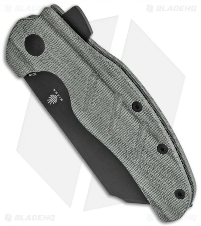 This Blade HQ Exclusive Kizer Vanguard Sheepdog XL C01C features black micarta handle scales and a blade made from CTS BD1N steel.